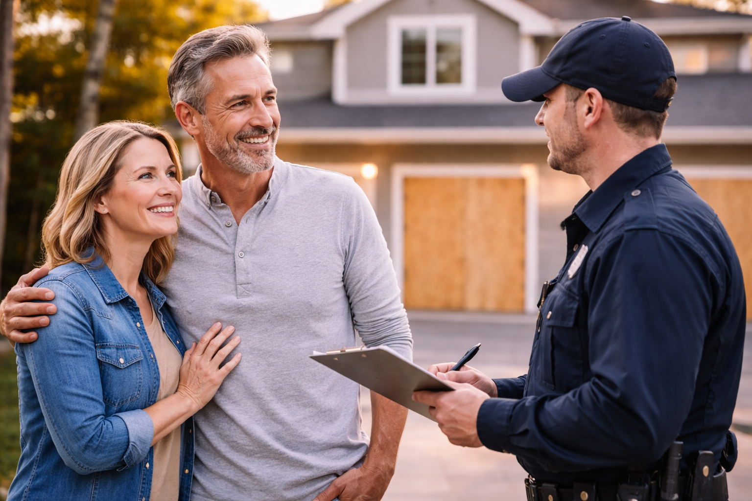 We respond after incidents such as forced entry, fire attendance, vandalism, weather damage, vacancy, or exposure.